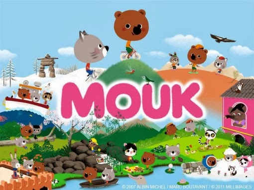 Et puis chaque jour il suit les aventures de MOUK, un petit ourson qui avec son ami Chavappa, un petit chat, fait le tour du monde à vélo. Il se connecte avec ses amis avec une webcam pour leur raconter ses aventures. Ce dessin animé est une vrai mine d’or pour expliquer à un enfant ce qu’il attend, d’autant plus que les paysages sont très bien fait et que les uses et coutumes des différents pays, y sont très bien représentés.