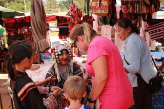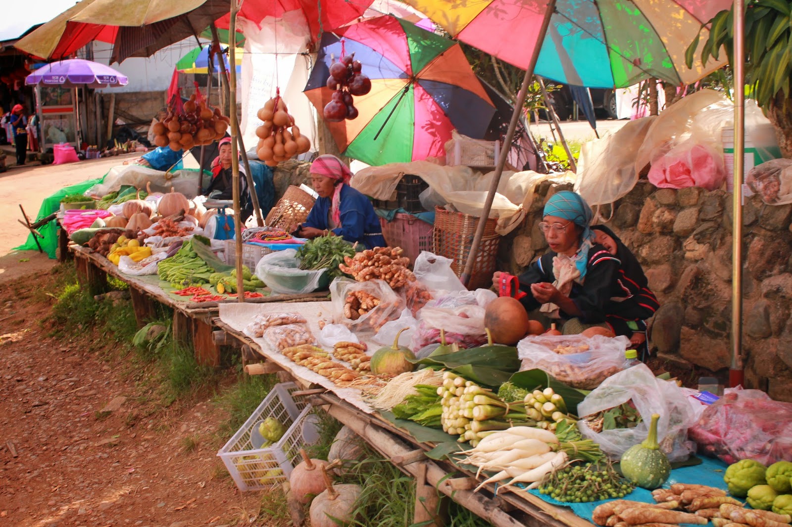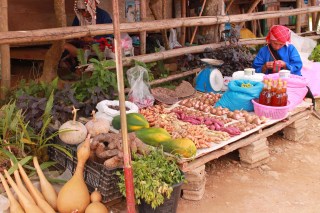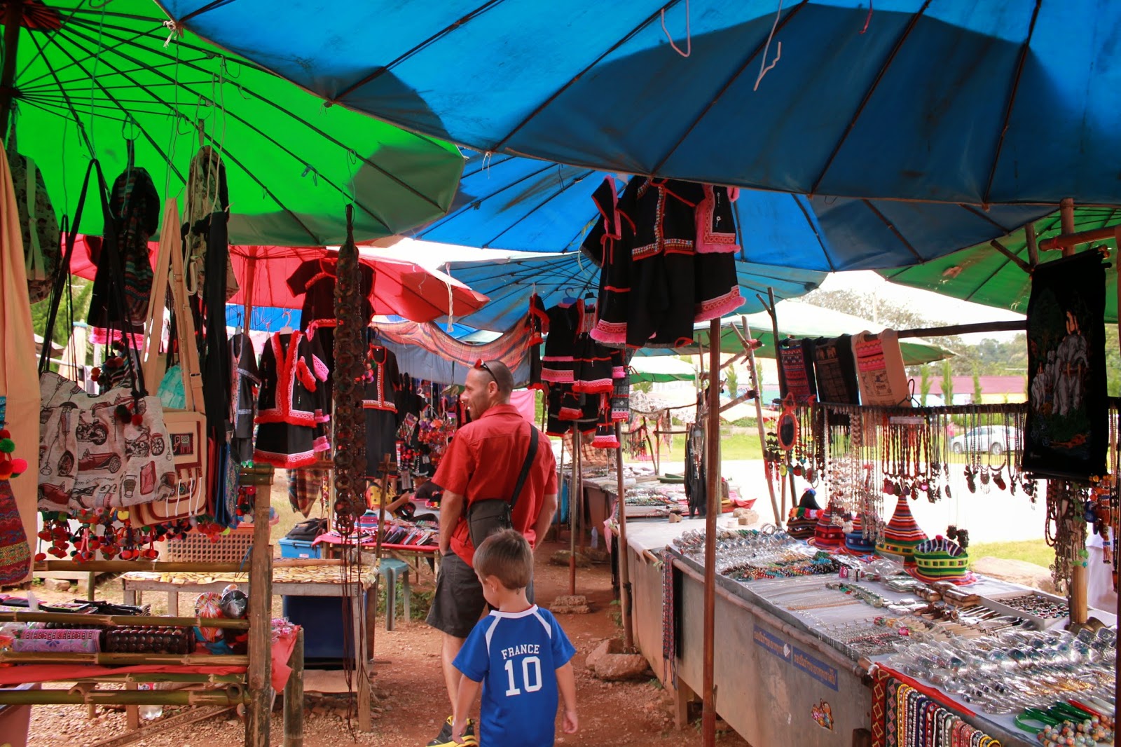 Pour finir cette agréable journée, et pour le plus grand bonheur d’Adrien, avec qui nous avons négocié, tu manges ton assiette et tu auras un petit cadeaux, nous nous rendons au marché local. Nous y trouvons essentiellement du thé mais aussi des légumes, et beaucoup d’artisanat birman. C’est très dure, de voir les femmes birmanes et les enfants vendre des bracelets. Ils se jettent sur nous pour nous les vendre et dès qu’on s’arrête pour en acheter un, ils débarquent tous pour qu’on leur achète à eux.