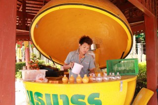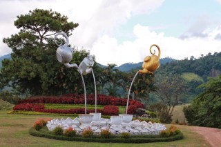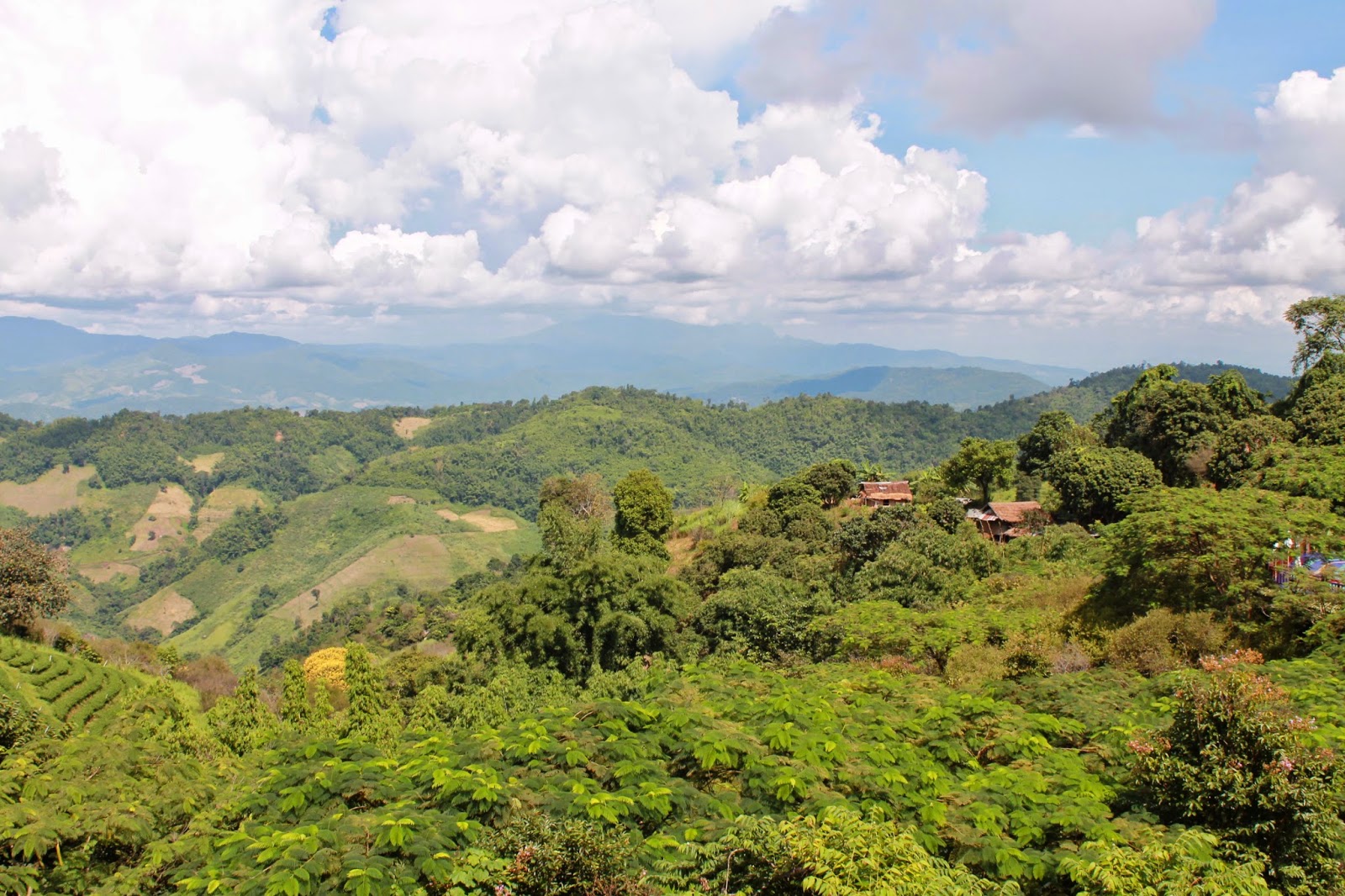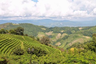 Nous mangeons dans un resort, avec vue magnifique sur la montagne et les plantations de thé. La nourriture est plus près de la nourriture chinoise que thaïlandaise. Elle n’est pas très épicée mais surtout extrêmement grasse. Nous mangeons une soupe avec des nouilles chinoises, plein de légumes et du toffu, et de l’omelette au porc.