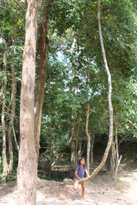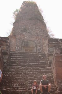 Nous partons ensuite voir le Bakong dont l’accès est très fleuri, et nous terminons par le Lolei, troisième temple du groupe, qui est actuellement en rénovation. Néanmoins nous faisons ici la rencontre de l’instituteur volontaire de l’école du village, qui nous fait visiter sa classe et nous présente son travail. C’est un jeune homme d’une 20aines d’année, qui enseigne la journée à des enfants très défavorisés, dont certains n’ont même pas de maison, et qui le soir étudie à l’université de Siem Reap. Un nouveau bâtiment est entrain d’être construit afin de pouvoir loger les élèves. L’école est financé par une Ong et par les dons des personnes qui viennent sur place.