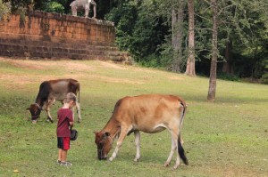 Ce temple est tout simplement grandiose. Il est entouré de verdure et d’un joli lac rempli de nénuphars. Nous y rencontrons même quelques singes gourmands. Vers 9h30,alors que les bus de touristes commencent à arriver et que la chaleur devienne insupportable, nous préférons rentrer après en avoir eu plein les yeux