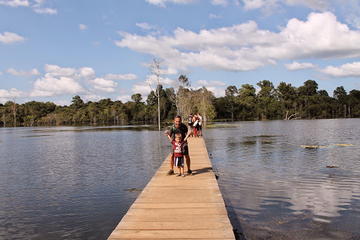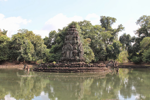 Nous nous arrêtons pour déjeuner juste en face du Neak Poan, que nous visitons par la suite. C’est un très joli temple entouré par les eaux. On y accède par une passerelle en bois juste au dessus de l’eau.
