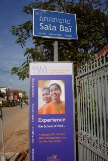 A Siem Reap il y a une multitude d’Ong qui a vu le jour. Nous souhaitions participer avec nos moyens à leur travail. Nous avons décidé d’aller prendre un repas à l’école hôtelière de Sala Bai.
