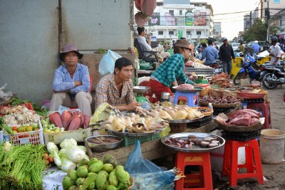 Nous découvrons une ville cambodgienne, avec sa circulation chaotique, son marché, ses rues sales, ses restaurants, ses échoppes mais surtout le sourire et la gentillesse de ses habitants. Nous nous perdons dans les rues où nul touriste de s’aventure jamais, et nous sommes accueillis par des Hello, aussi bien des enfants que des adultes et de grands sourires. Finalement voyant que nous étions perdus,un messieur en vélo s’est gentillement arrêté pour nous indiquer notre chemin.