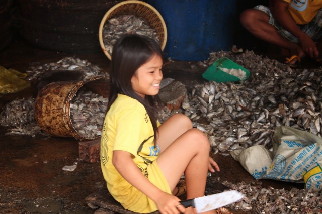 Nous passons par le marché de poissons. Horreur l’odeur, ils font une spécialité à base de poissons, donc le poisson masserait dans des seaux….NO COMMENT!