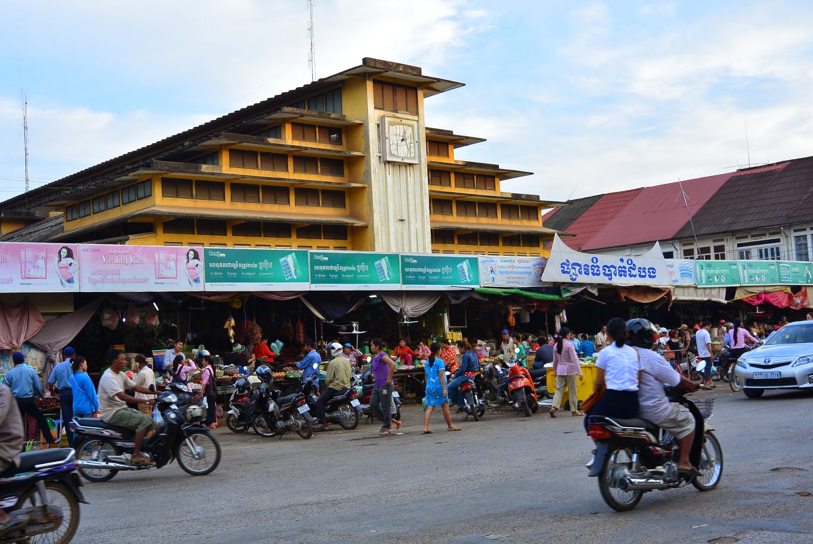 Nous découvrons une ville cambodgienne, avec sa circulation chaotique, son marché, ses rues sales, ses restaurants, ses échoppes mais surtout le sourire et la gentillesse de ses habitants. Nous nous perdons dans les rues où nul touriste de s’aventure jamais, et nous sommes accueillis par des Hello, aussi bien des enfants que des adultes et de grands sourires. Finalement voyant que nous étions perdus,un messieur en vélo s’est gentillement arrêté pour nous indiquer notre chemin.