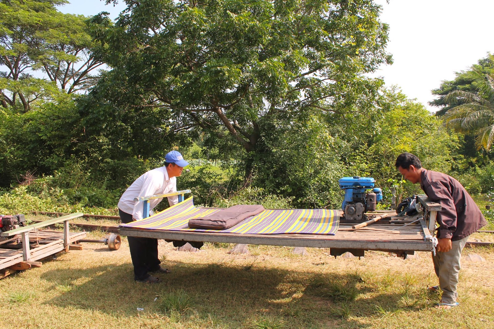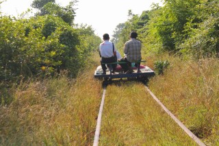 Pour le retour nous nous sommes arrêtés sur le trajet car la voie est unique et lorsque qu’on croise un autre bambou train il faut descendre et démonter le train!