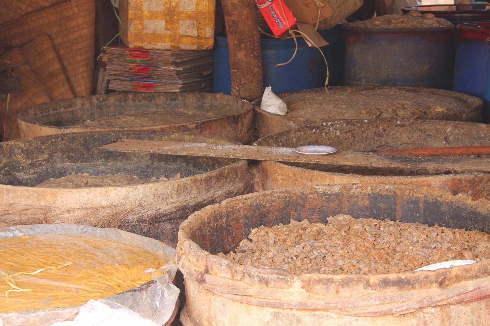 Nous passons par le marché de poissons. Horreur l’odeur, ils font une spécialité à base de poissons, donc le poisson masserait dans des seaux….NO COMMENT!