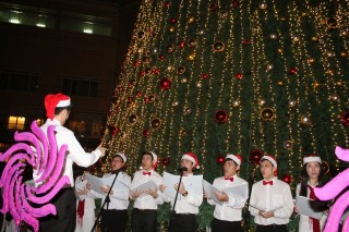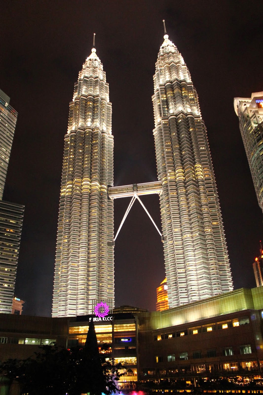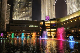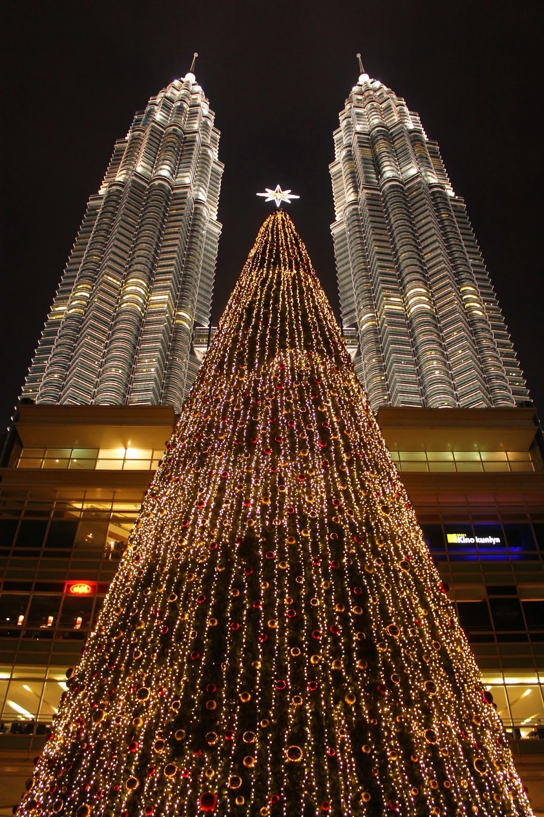 Pour notre dernière soirée, nous sommes retournés aux tour Petronas pour les admirer de nuit et voir le spectacle des fontaines. Nous avons eu de la chance, car ce soir là, le sapin géant devant les tours a été illuminé. Il y avait la télévision qui filmait, car en fait, le prix du plus grand sapin a été décerné à la ville. Pour l’occasion, on a eu droit à des chants de Noël et même pour le plus grand bonheur d’Adrien, à la venue du Père Noël! Petite réflexion d’Adrien qui a remarqué que père Noël parle aussi anglais! Ce soir là nous avons à nouveau dîné dans le food court du Suria Klcc