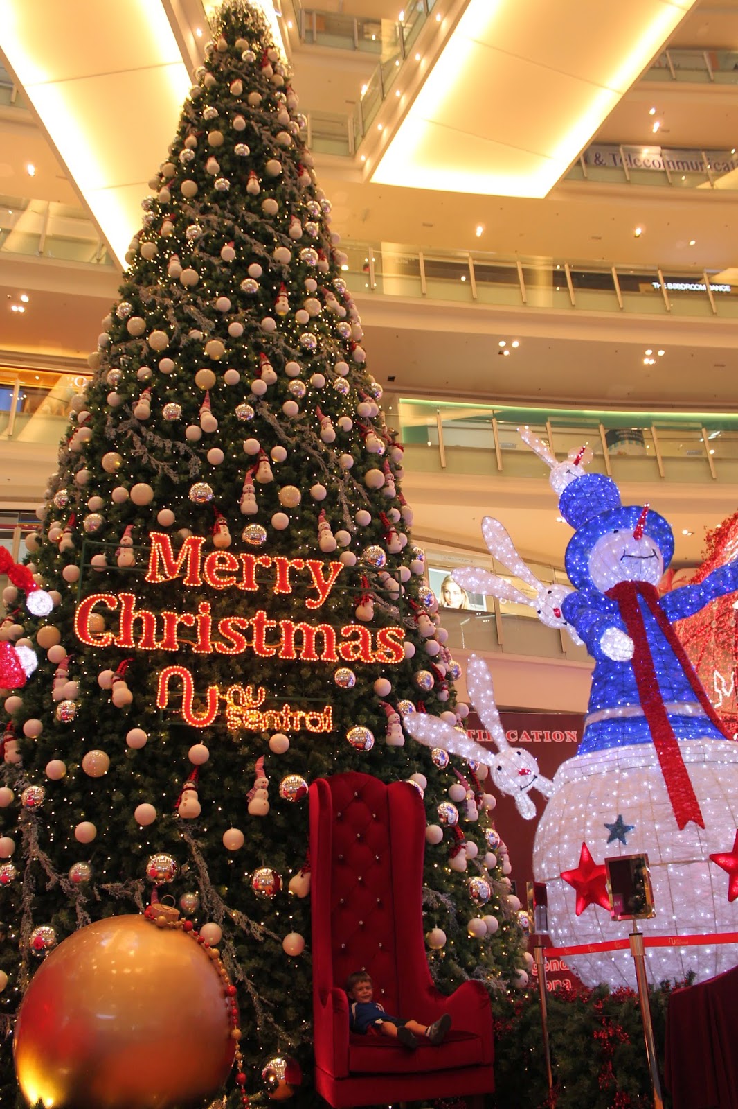 On s’est ensuite rendu au Barjaya Times square, un mall de 11 étages qui a même un parc d’attraction indoor. Tout était bien décoré pour Noël, nous avons passé l’après midi au parc à faire des parties de jeux vidéo, pour le plus grand bonheur d’Adrien.