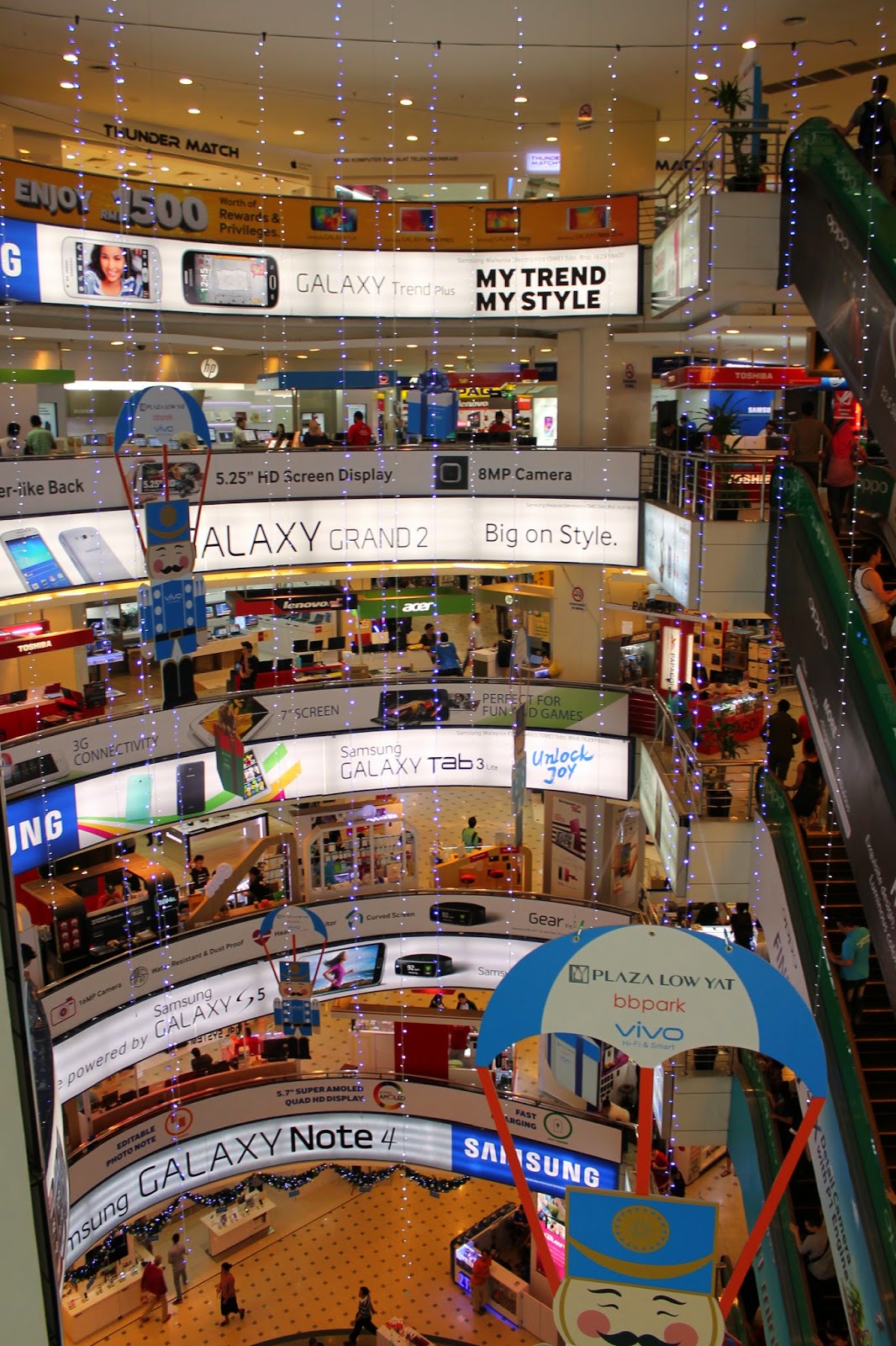 Nous avons commencé par visiter le Plaza Low Yat, un immense mall, uniquement dédié à l’informatique, photographie et téléphonie. On a complètement halluciné!!!! Pour les accrocs à l’électronique, ou celui qui veut acheté quelques choses, c’est carrément le paradi. Il y a de tout et bien moins cher qu’en France.