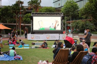 Pendant le mois de janvier, periode des vacances estivales en Australie, à côté du Playground sont projettés chaque soir, en plein air et gratuitement sur un écran géant, des films tout public et pour enfants. Nous sommes allés voir le Roi Lion.