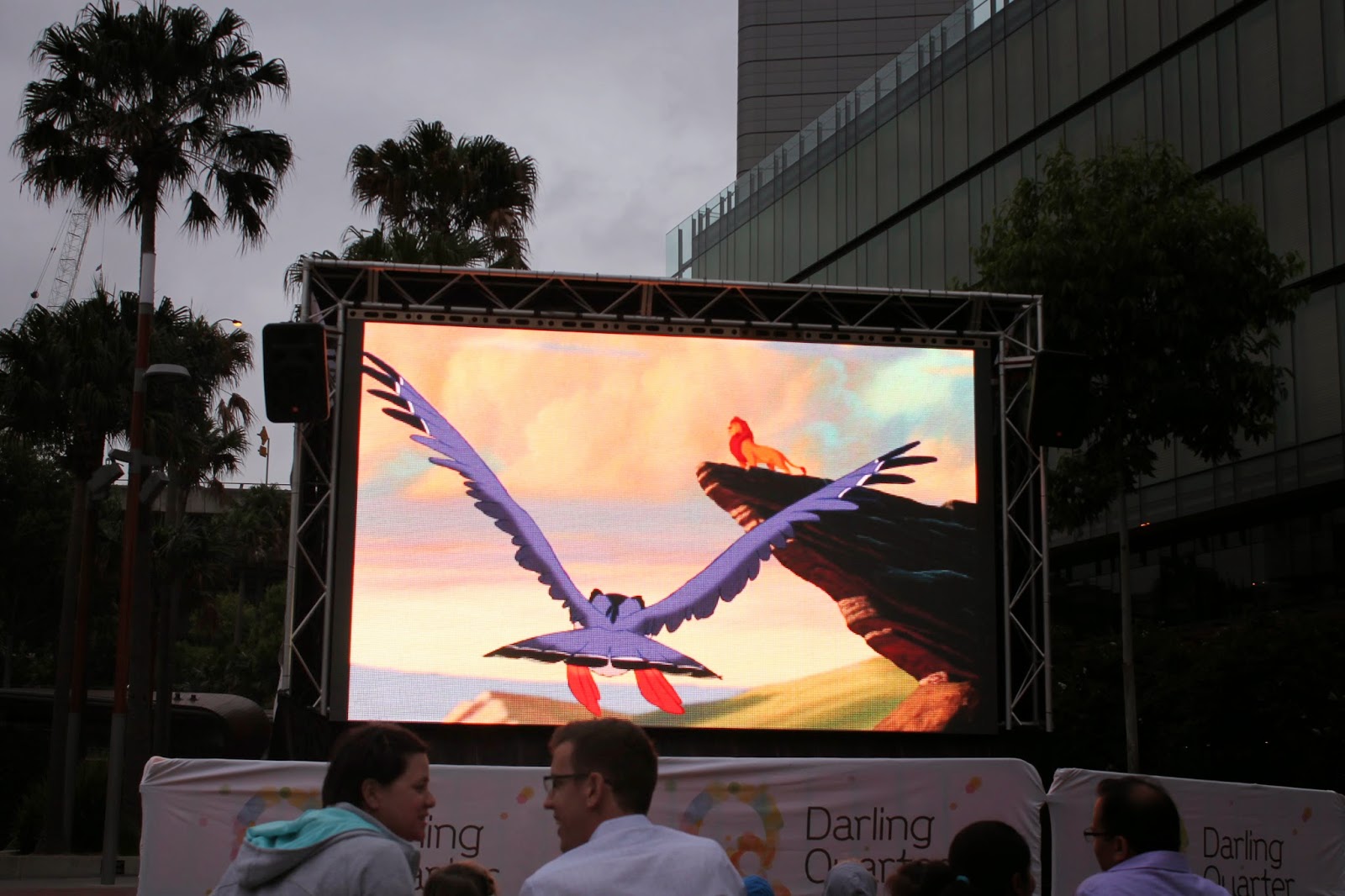 Pendant le mois de janvier, periode des vacances estivales en Australie, à côté du Playground sont projettés chaque soir, en plein air et gratuitement sur un écran géant, des films tout public et pour enfants. Nous sommes allés voir le Roi Lion.