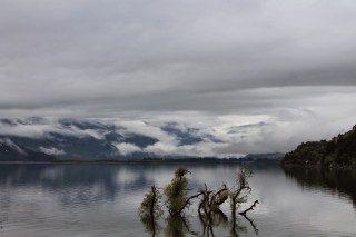 Tant pis, nous reprenons la route avec le mauvais temps mais nous devons avancer en direction du lac Wanaka. Après deux très bonnes heures de route nous longeons le lac pour nous arrêter dans un petit coin de paradi sur lequel nous trouvons un camping des Doc. Nous passerons donc la nuit au bord du lac mais sous la pluie….