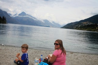 Notre déjeuner du jour se fera sur la plage du lac. Queenstown est une station de sport d’hiver mais aussi d’été avec son millier d’attraction proposé. Son centre est rue piétonne bordée de magasins, de restaurants et bars branchés. Bien entendu on trouve une flopée de centres touristiques qui vendent des tours. Queenstown nous apparaît comme une station touristique un peu sur-faite comme nous en trouvons dans les Alpes chez nous mais où se croisent backpackers et vacanciers aisés.