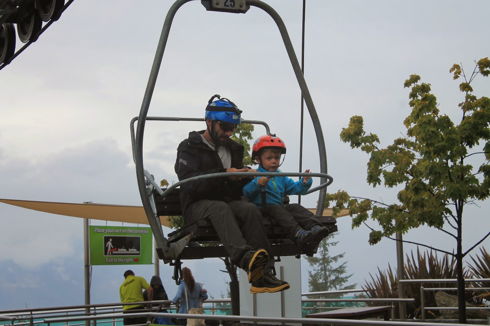 L’après midi, nous prenons la Gondola, soit le téléphérique pour aller faire de la luge d’été et admirer la vue sur la vallée. Vu les tarifs exorbitants, seuls Cédric et Adrien feront de la luge, moi je prendrai les photos. La montée seule en téléphérique coûte 30 dollars, pour le téléphérique et 3 tours de luge adulte ce sera 42 dollars et 6 dollars au total pour Adrien.
