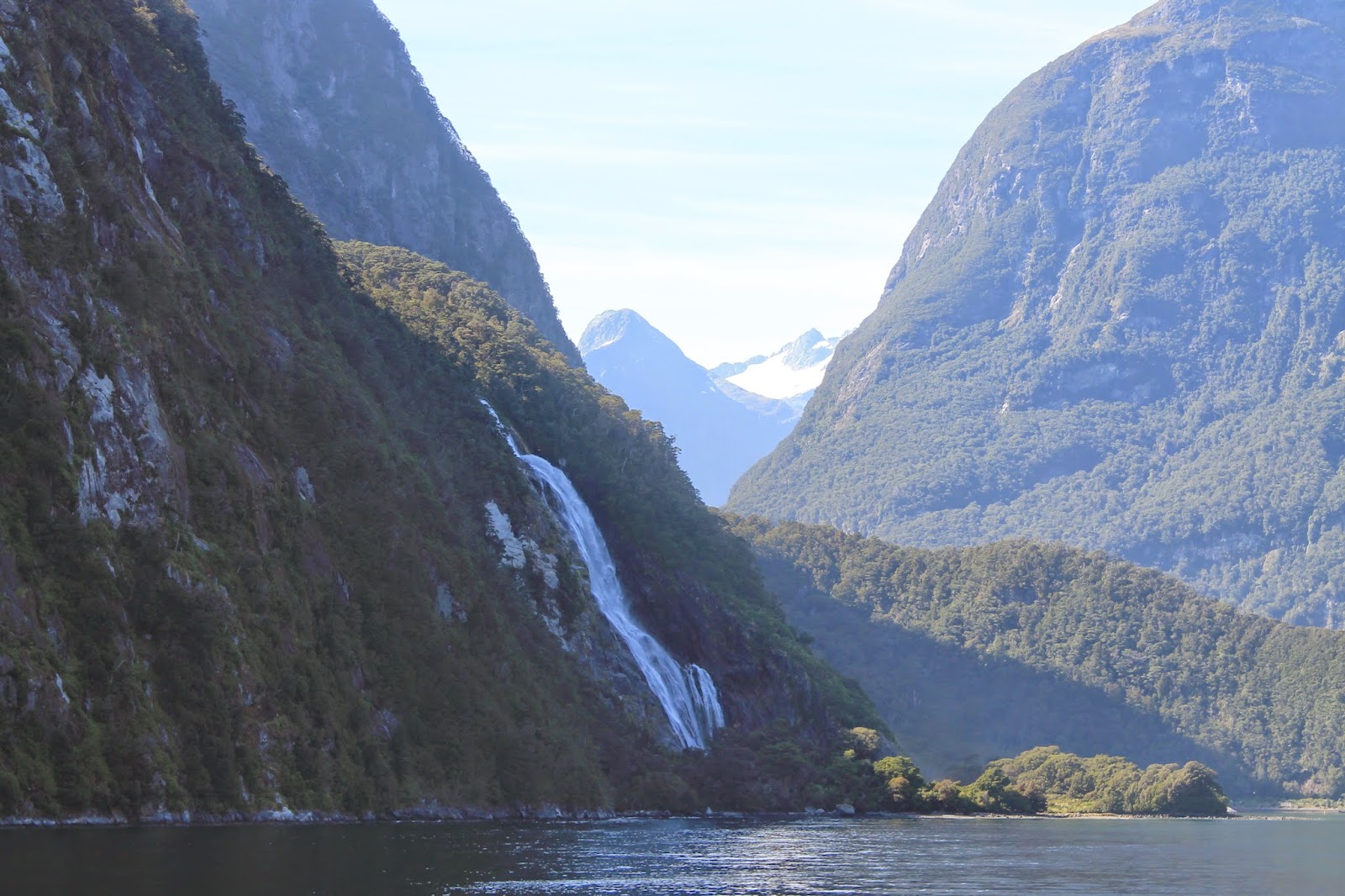 Le paysage est magnifique, d’autant plus que nous n’avons jamais vu de fjord. Nous voyons des otaries se prélasser sur les rochers et jouer dans l’eau. Tout au long des montagnes nous découvrons de jolies cascades. Nous avons eu beaucoup de chance car il a fait très beau. Ici la météo est très aléatoire et il est même rare de voir le fjord par un temps clair.