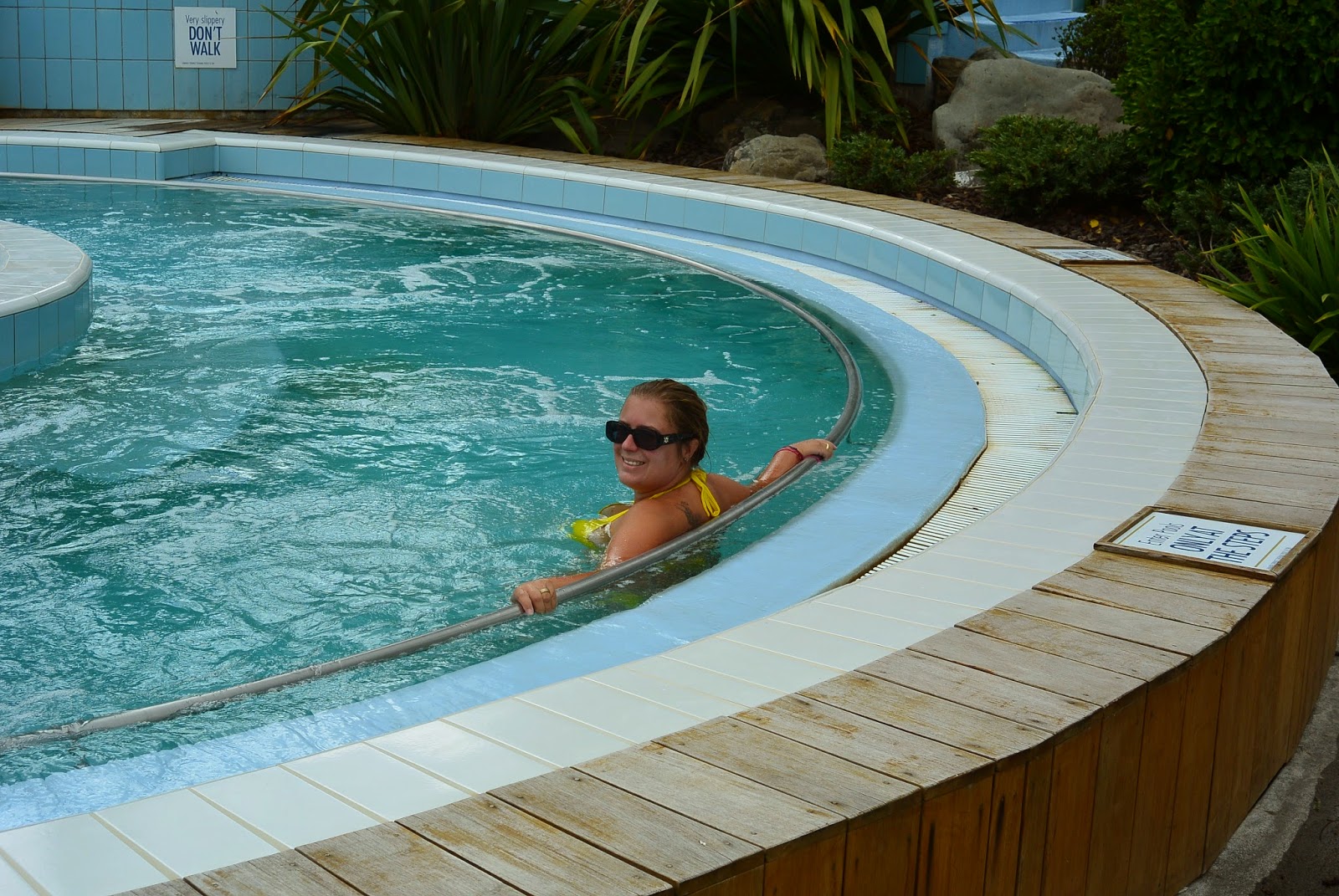 De notre site des Doc à Hanmer Spring, il y a une heure de route. Une heure, pendant laquelle, nous prions que la pluie s’arrête car, nous avons prévu d’aller aux piscines thermales et qu’Adrien s’en fait une immense joie, depuis deux jours. Par chance après avoir traversé de magnifiques paysages de montagne, le soleil apparaît enfin nous allons pouvoir aller nous détendre et Adrien se défouler un peu après nos déjà 2300 kilomètres de route!