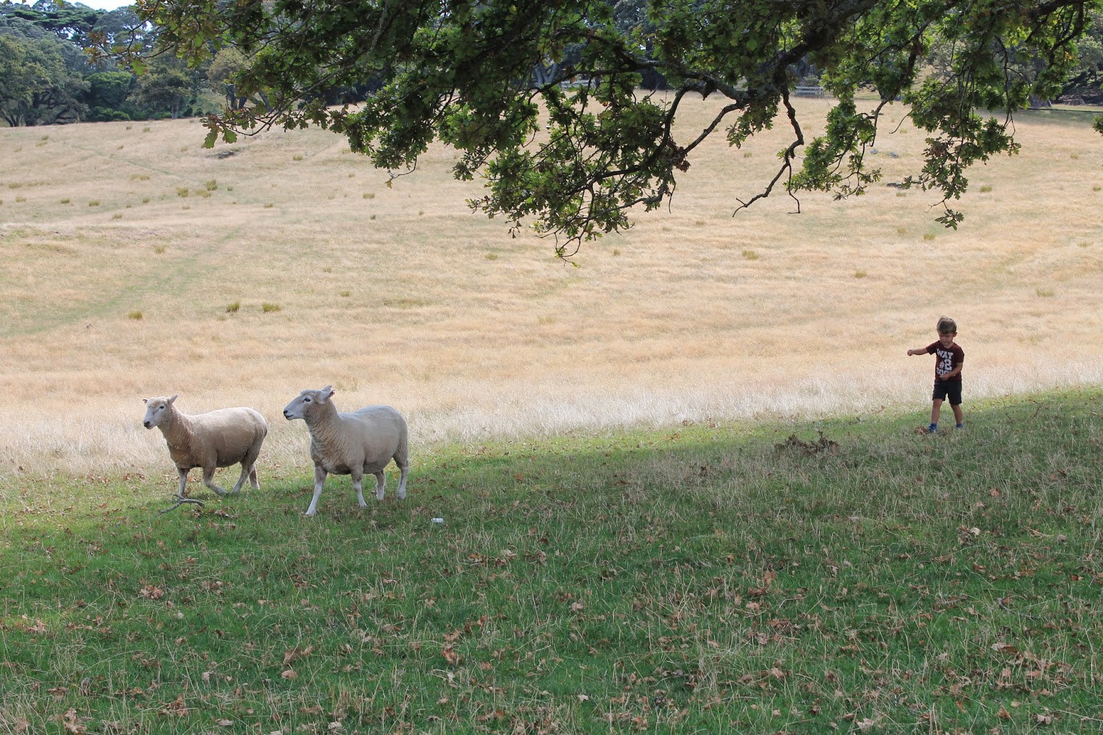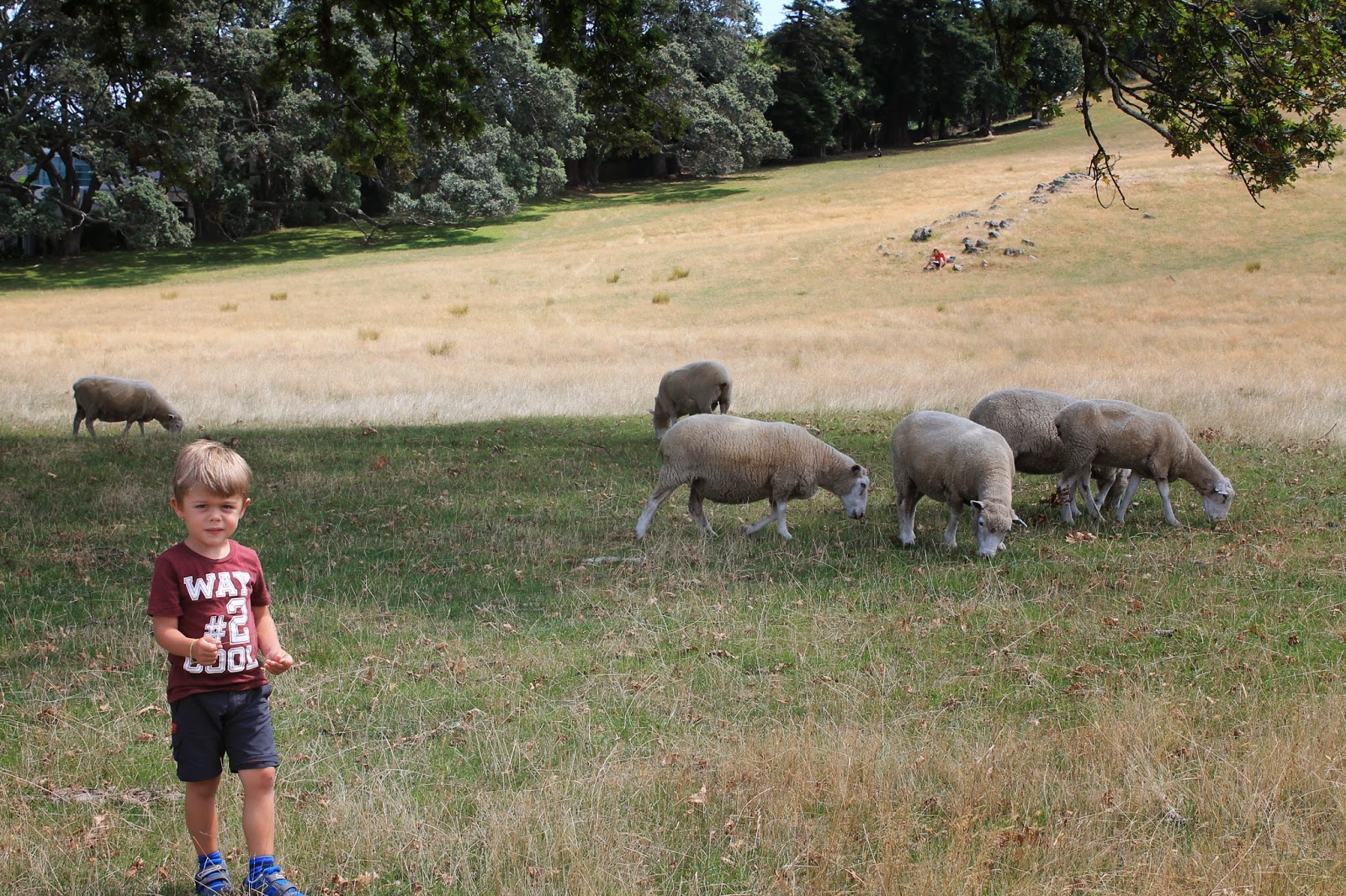 On a du mal à croire que nous sommes en Nouvelle Zélande! Nous prenons néanmoins le chemin de One Three Hill. Cette colline a un charme fou car elle rempli de moutons en liberté, qui se promènent un peu partout dans le parc. A son point le plus haut, il y a une très belle vue sur toute la ville. Le parc est très grand et il y a une très belle aire de jeux pour Adrien. Nous faisons notre pic nique et profitons du soleil et des moutons. Finalement nous arrêterons la visite ici et préférerons nous diriger vers le camping près de l’aéroport. Nous en profitons pour ranger le van, faire la lessive et refaire les bagages.