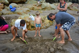 Nous arrivons en début d’après midi à Hot Water Beach où nous découvrons le super camping Top 10. Nous décidons de nous poser pour l’après midi et d’aller creuser notre trou sur la plage vers 19h. En effet, Hot Water Beach est populaire pour son phénomène géothermique. Il suffit de venir sur la plage à des horaires très précis en fonction de la marée 2 fois par jour et de creuser un trou à des endroits stratégiques pour faire apparaître une source d’eau chaude.