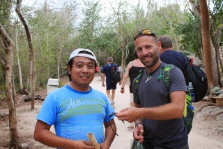 Pour la petite histoire personnelle, en empruntant ce chemin, nous tombons sur un vendeur de statues en bois qui a des modèles qui nous plaisent. Ce qu’on ne vous a pas encore dit, c’est que l’art mexicain, nous plait beaucoup et que depuis qu’on est arrivé on lorgne bon nombre de souvenirs. Cette fois, après une petite négociation, nous nous offrirons 3 belles statues en bois, faites main, par notre vendeur adorable. Pour nous remercier, notre petit vendeur en offrira une de plus à Adrien.