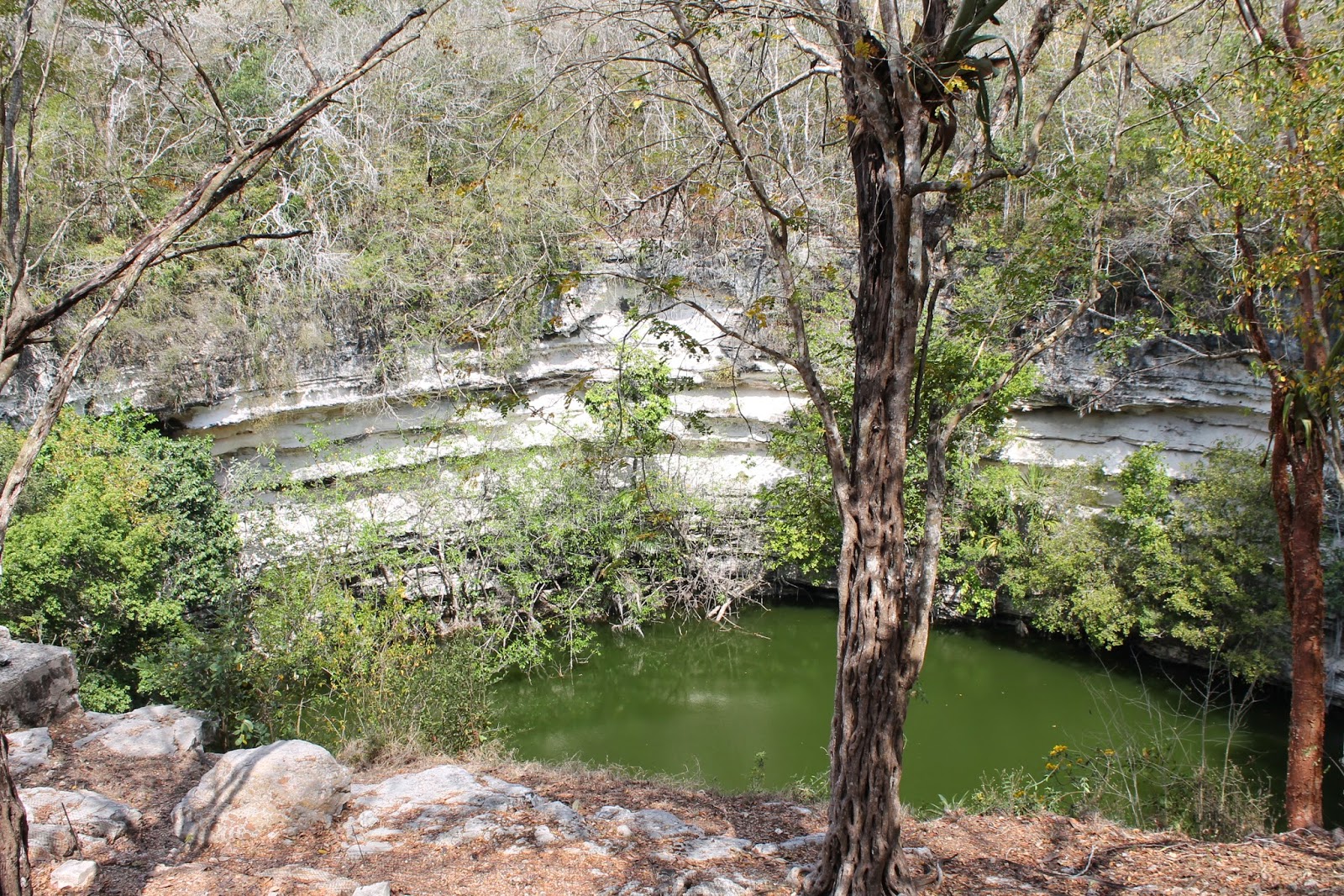 Comme toute cité maya, la ville a été construite autour d’une cenote, accessible par un chemin depuis la pyramide. Pour info, cette cenote sacrée n’est pas accessible à la baignade.