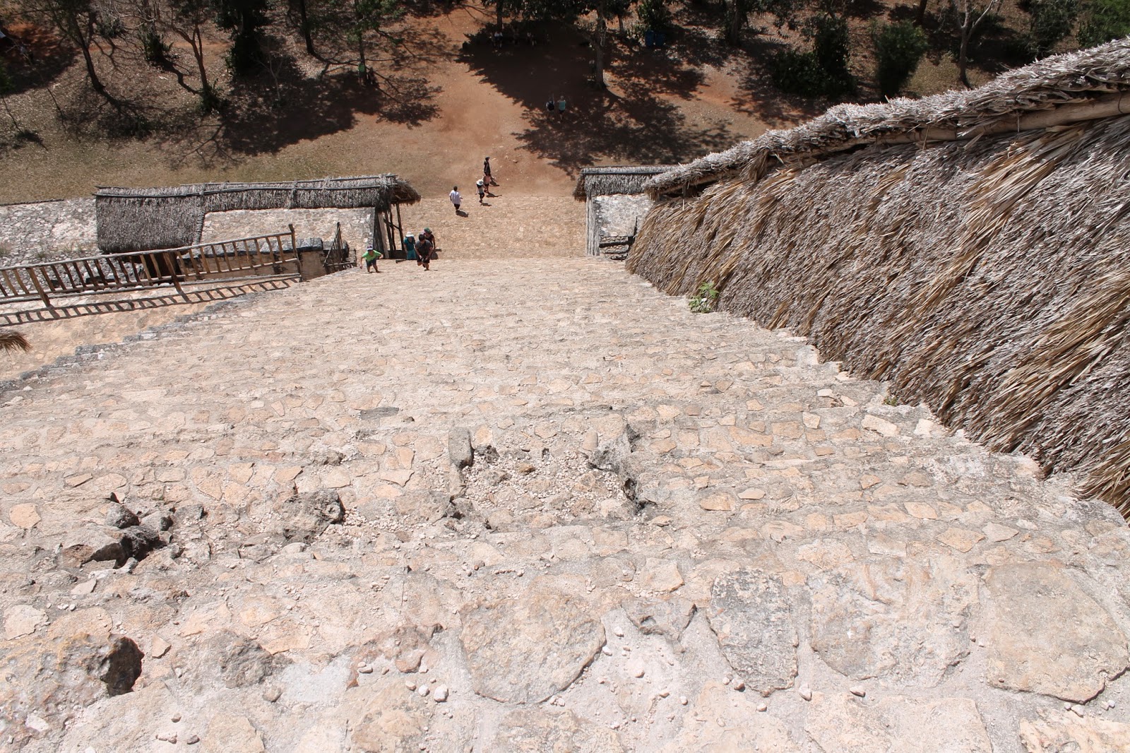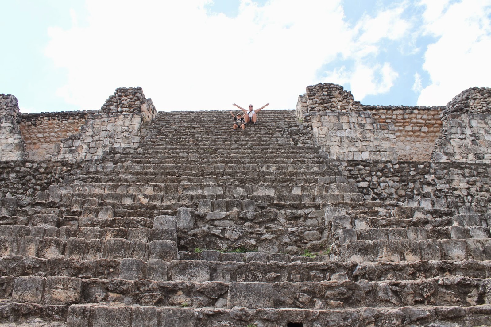 A 30 kilomètre de Valladolid, se trouve les ruines de la cité maya d’Ek Balam. Nous nous y sommes rendus en colectivo pour 50 pesos par personne, gratuit pour Adrien . Cette fois ci il ne s’agit pas d’un minibus mais bien d’un taxi que nous partageons avec une dame. Nous arrivons devant le site et le chauffeur nous propose de venir nous rechercher, ce que nous acceptons car le site est assez isolé et qu’il n’y a pas grand monde. L’entrée sur le site coûte 130 pesos par personne, gratuit pour Adrien.