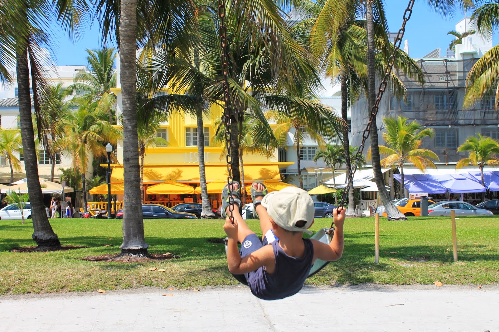 Nous découvrons de belles villas, les pieds dans l’eau avec bateau amarré devant la porte d’entrée, de beaux hôtels et surtout de magnifiques plages de sable. L’endroit idéal pour ne rien faire en vacances et venir vivre toute la vie!!!!! Mais c’est surtout le paradis des belles voitures, donc le paradis d’Adrien, dont les mots « Wahoo la belle voiture », Wahoo la Ferrari, la Porche, la Mustang, la Camaro, t’as vu maman » ne quittent plus sa bouche. Notre petit Adrien est en total extase devant tous ces bolides.