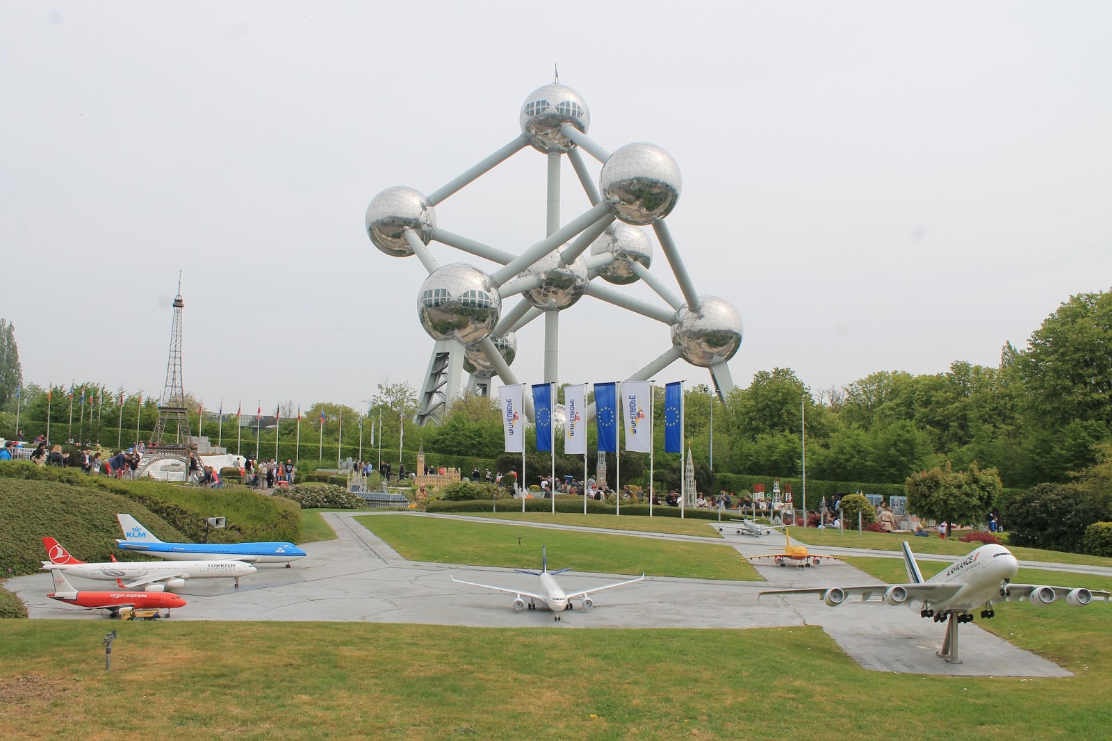 Une fois l’appartement rendu et les bagages déposés, nous avons pris le métro pour nous rendre au pied de l’Atomium, structure futuriste érigé pour l’exposition universel de 1958. Une visite incontournable lorsqu’on visite Bruxelles. Comme pour la Tour Eiffel, elle peut être contemplée de l’extérieur ou être visitée. Etant donné le tarif, nous nous avons renoncé à sa visite et avons préféré visiter Mini Europe, un parc des miniatures au pied de l’Atomium, représentant tous les pays d’Europe. Ce parc est super. Il est très bien entretenu et chaque détail est soigné. Une visite très riche qui nous a permis de clôturer notre tour du monde par un mini tour d’Europe.