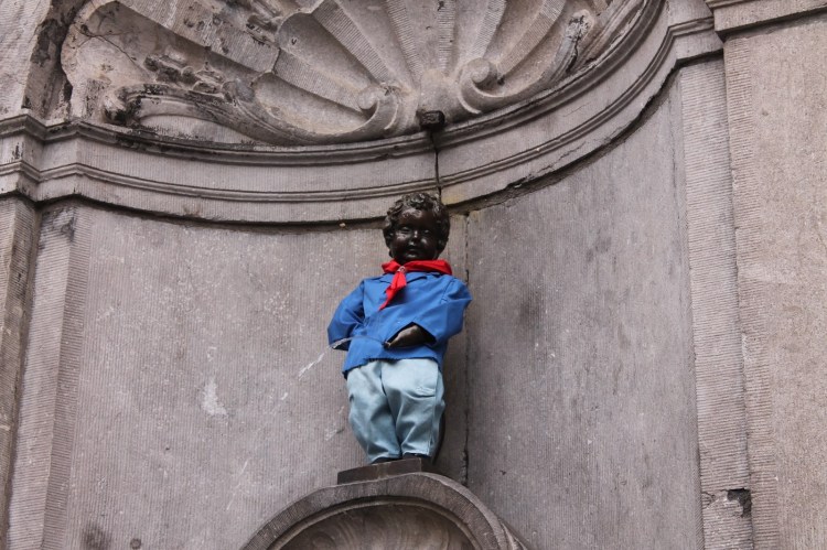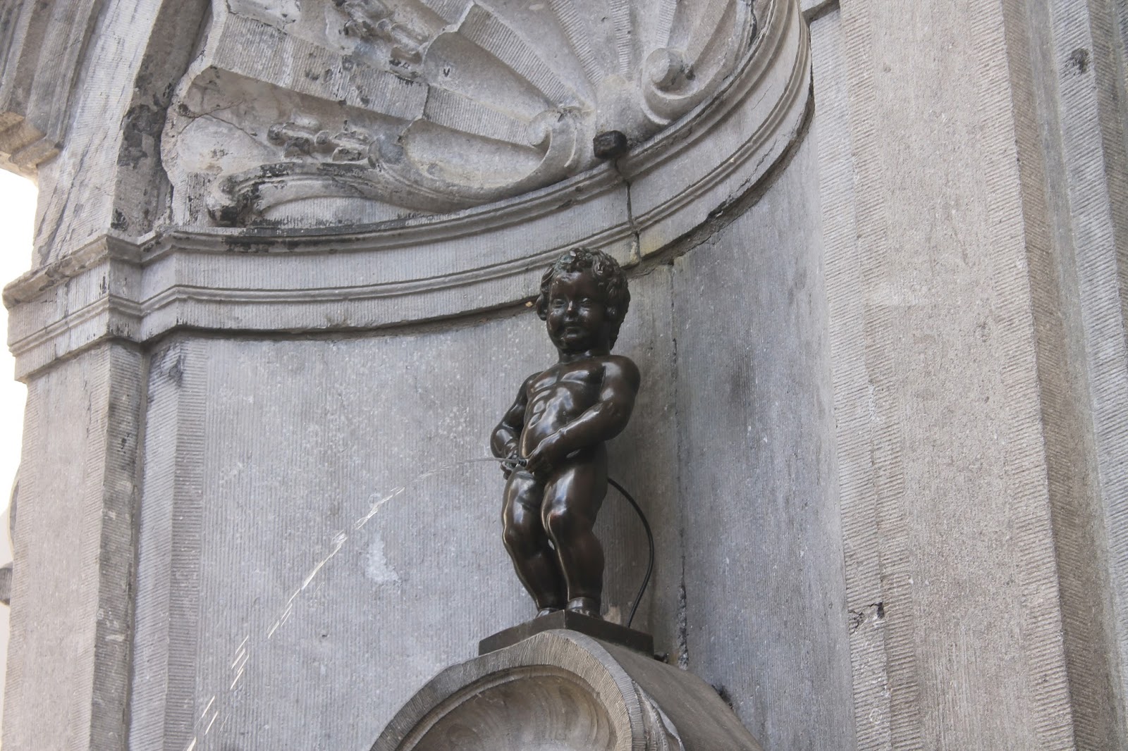 Sur notre chemin nous croisons le Manneken Pis. Cette fontaine connue dans le monde entier est en réalité toute petite.