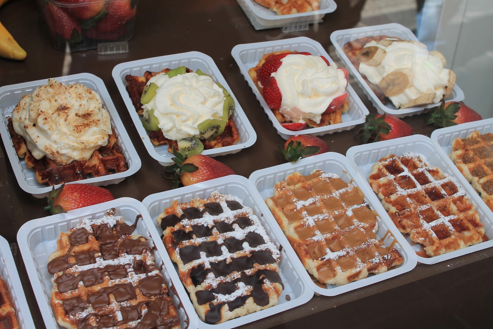 Elle se trouve à l’angle d’une rue très touristique, où boutiques de chocolats côtoient boutiques de souvenirs et marchands de gaufres. Nous en profitons pour gouter notre première gaufre au sucre pour un prix de 1 euros défiant toute concurrence!(vous vous douterez bien qu’à Nice une gaufre au sucre coûte au minimum 3 euros). Les gaufres belges sont vraiment délicieuses, rien à voir avec celle qu’on trouve chez nous.