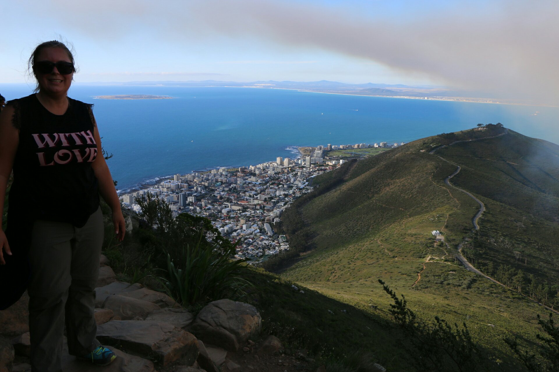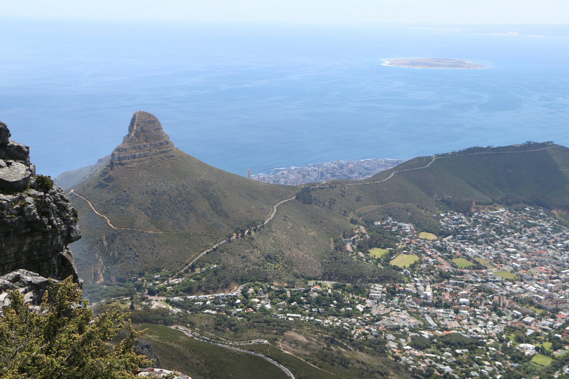 La tête de lion est la montagne qui rejoint Signal Hill. Son sommet est à un peu plus de 600m et on y accède par une marche puis un peu d’escalade en 1 heure. La vue y est superbe, mais l’accès n’est pas facile. Des chaînes et échelles sont aménagés sur les endroits les plus raides. Pour ceux qui ont le vertige, un chemin échappatoire permet de contourner la partie la plus dangereuse. Adrien est monté par la partie la plus raide!