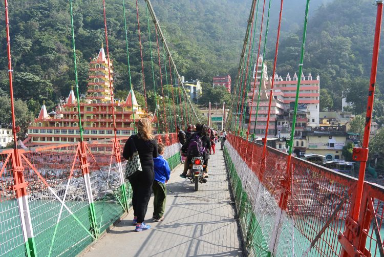 Rishikesh est une petite ville en bord de Gange au confin de l’Himalaya. C’est l’endroit idéal pour une retraite spirituelle et pour prendre des cours de yoga dans un ashram. Mais la renommée touristique de la ville est due à la venue des Beatles en 1968 qui s’étaient retirés dans un des ashram de la ville. Il n’est donc pas rare de croiser des européens guitare à la main, pensant que Rishikesh va leur donner l’inspiration pour devenir les nouvelles stars de demain. L’ambiance ici est donc plutôt détendue et cool, et aux hindous se mêlent nos compatriotes européens chevelus aux dreadlocks ou au contraire quelques spécimens au crâne rasé en tenue de Jésus!!!! Lol!