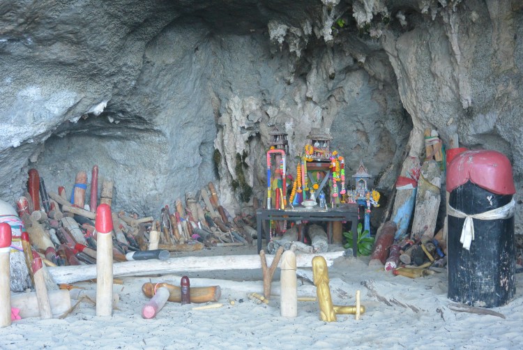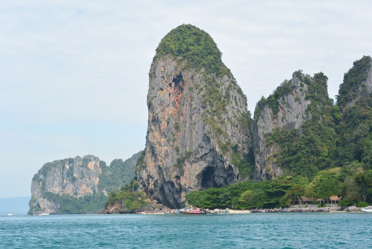 En ce qui nous concerne, nous nous en sommes tenus à la découverte de la plage de Railay. Nous avons pris un long boat qui fait le trajet en 15 minutes pour 200 baths par personne aller retour. La baie est absolument magnifique entourée de pics karstiques. Seul inconvénient c’est qu’il y a énormément de monde. Préférer donc y aller le matin avant que la foule arrive. Depuis Railay, il est possible de louer des kayaks pour 100 baths de l’heure afin de découvrir les plages environnantes. La plage de Phra Nang vaut le détour pour ses formations rocheuses, son sable blanc et la grotte au phallus.
