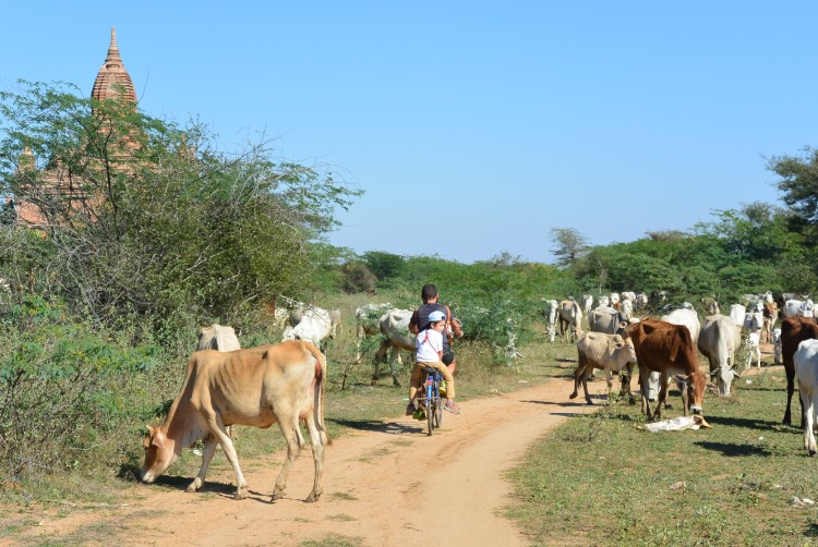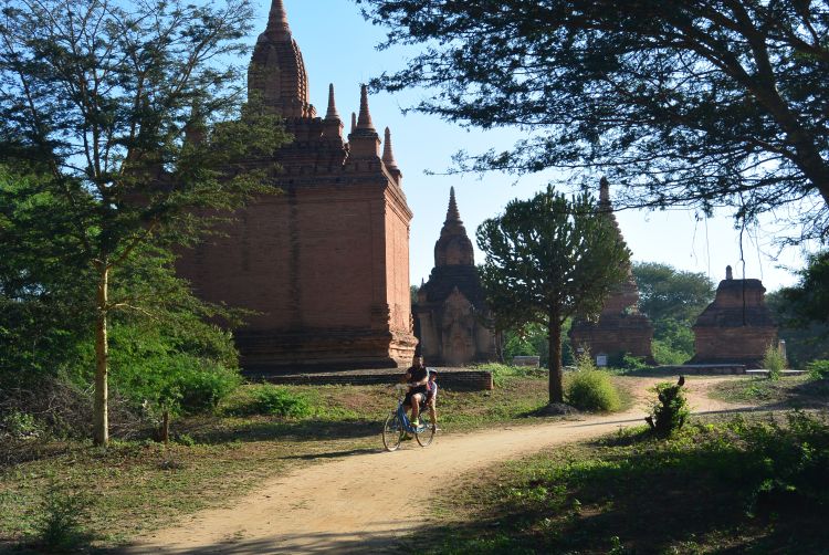 Pour visiter le site, depuis New Bagan, nous avons louer des vélos. Ils nous ont permis de nous déplacer très facilement sur les petits chemins et ce fût bien agréable. Nous les avons gardé 2 jours. Puis depuis Nyaung Oo, nous avons loué un e-bike (scooter électrique) afin de pouvoir faire un peu plus de distance mais surtout car nous n’avons pas trouvé de vélo avec le porte bagage rembourré pour Adrien.