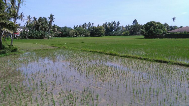 Donc nous avons laissé tomber l’idée de faire du snorkeling et avons pris la route à travers de jolies paysages. Entre rizières, bananiers, cocotiers, village et vue sur l’océan, la route qui fait le tour de l’île nous a enchanté.