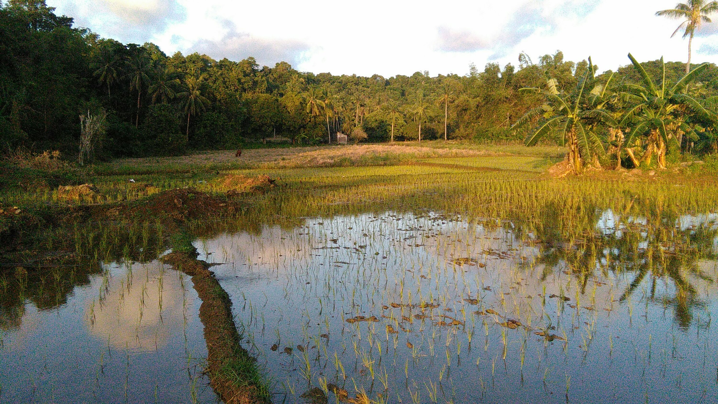 Donc nous avons laissé tomber l’idée de faire du snorkeling et avons pris la route à travers de jolies paysages. Entre rizières, bananiers, cocotiers, village et vue sur l’océan, la route qui fait le tour de l’île nous a enchanté.