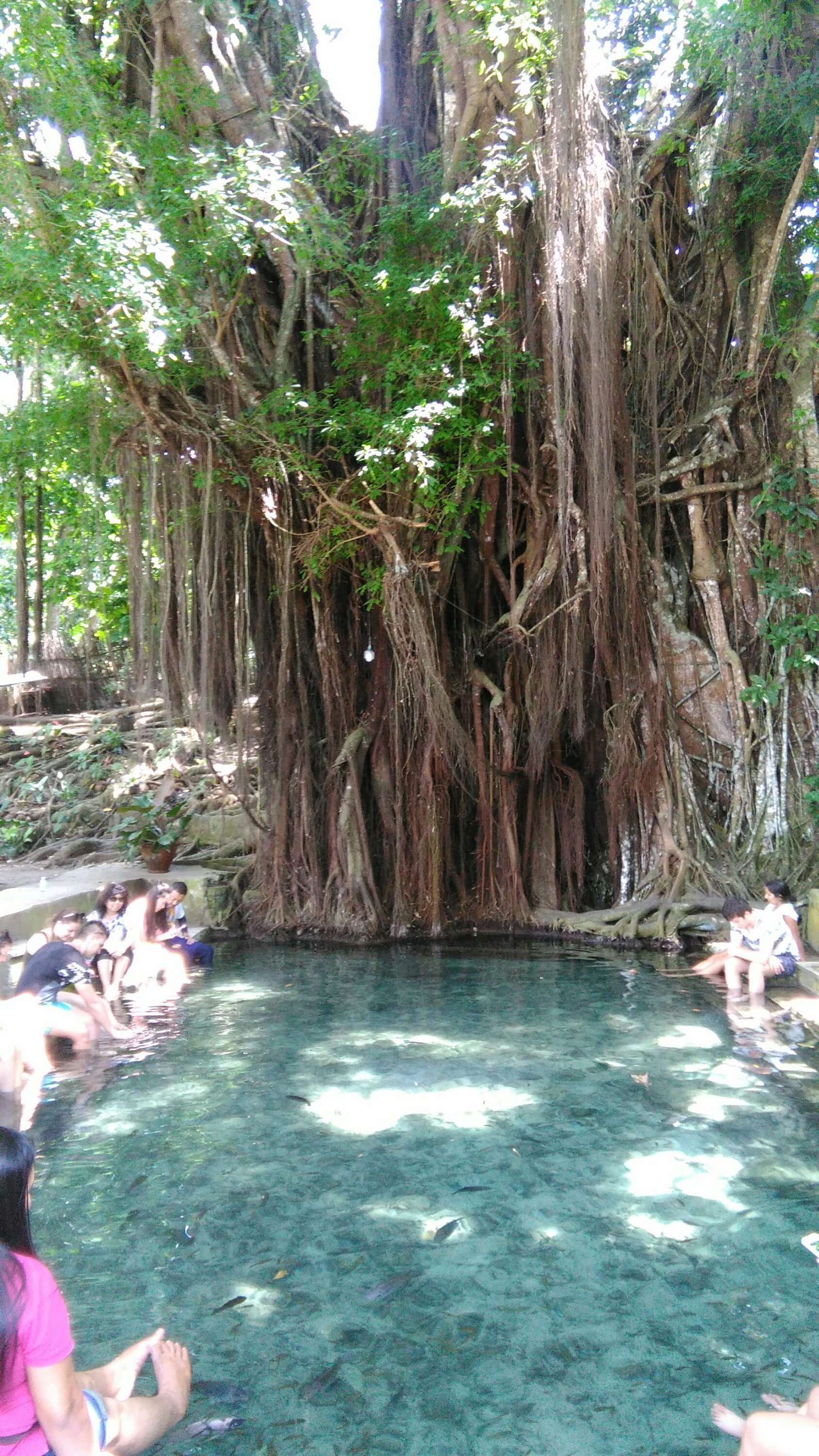 Après un bain rafraîchissant, nous avons repris la route vers le spa naturel du Old Balete Tree, afin de faire un fish pedicure pour 10 pesos au pied d’un arbre centenaire.