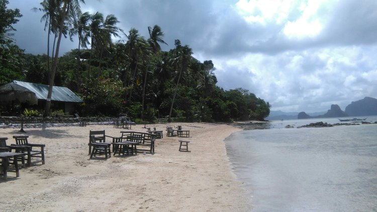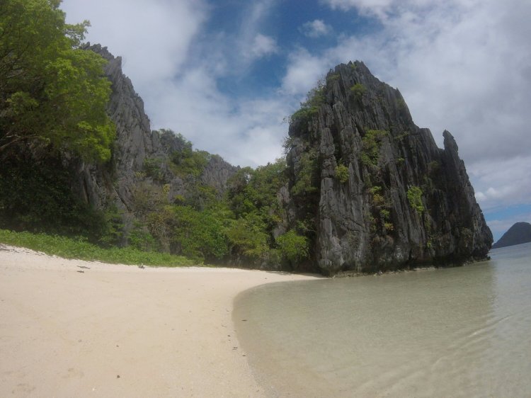 La baie de Bacuit se caractérise par ses pitons rocheux sortis de mer. La petite localité de El nido, possède donc un emplacement stratégique tournée vers la baie.