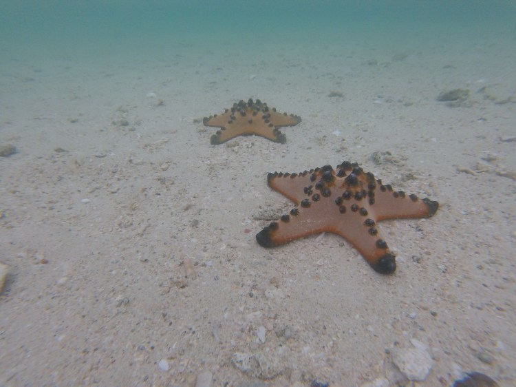Nous profitons encore un peu de la plage puis nous partons pour un autre spot de snorkeling, encore plus beau que le premier! Enfin nous faisons une petite escale sur une minuscule plage pour observer des étoiles de mer.