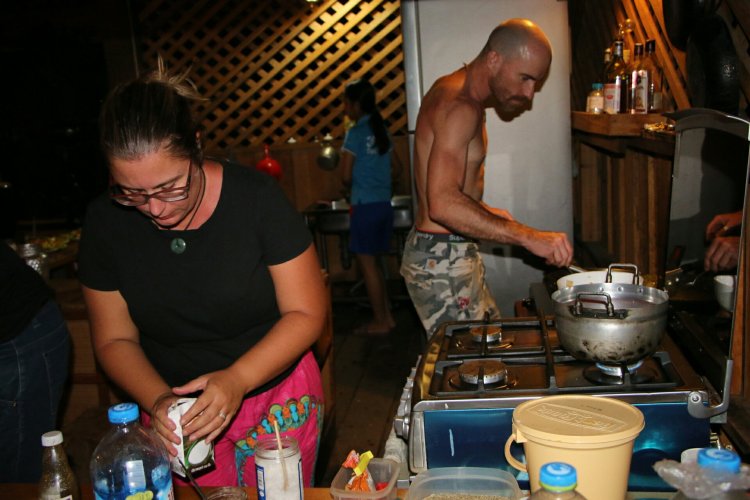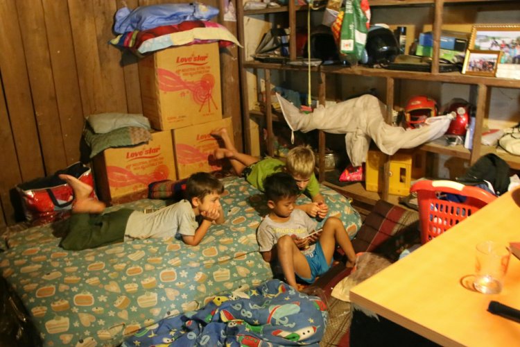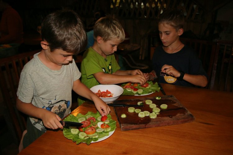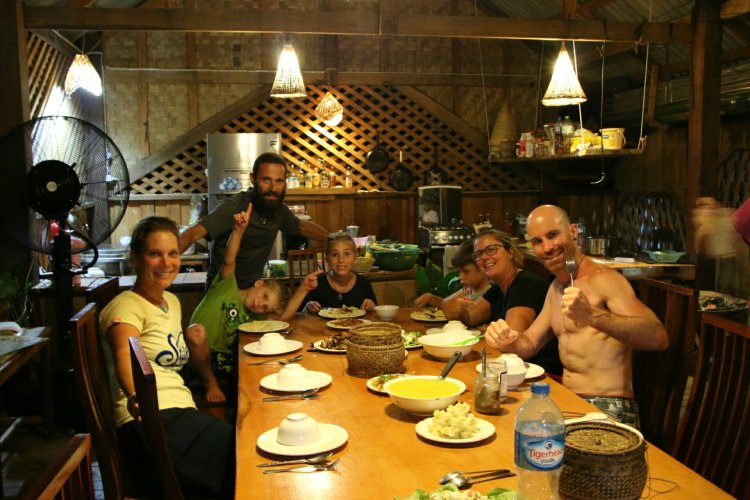 On doit vous avouer, que nous devions y passer deux ou trois nuits maximum et que nous y sommes restés finalement 7 nuits, voyant ainsi les voyageurs arriver puis partir…. Nous avons ainsi fait la connaissance de deux familles tourdumondiste. Tout d’abord Franck, Sophy, Robin et Martin, avec qui nous avons de suite accroché et que nous retrouverons très bientôt en Chine! Et Laetitia, Jeremy et leurs 3 enfants, avec lesquels nous nous sommes bien marré lors de la visite du village ethnique du Capitaine Hook. Nous avons également rencontré des couples de voyageurs adorables, qui suivent des routes similaires aux nôtres: Pauline et Mathieu, qu’on espère retrouver au Népal, Theo et Irène, un couple franco espagnol qu’on recroisera peut être au Vietnam, Cyril et Flore, qui eux partent pour les Philippines. Vous imaginez bien que nos soirées ont été sympas!