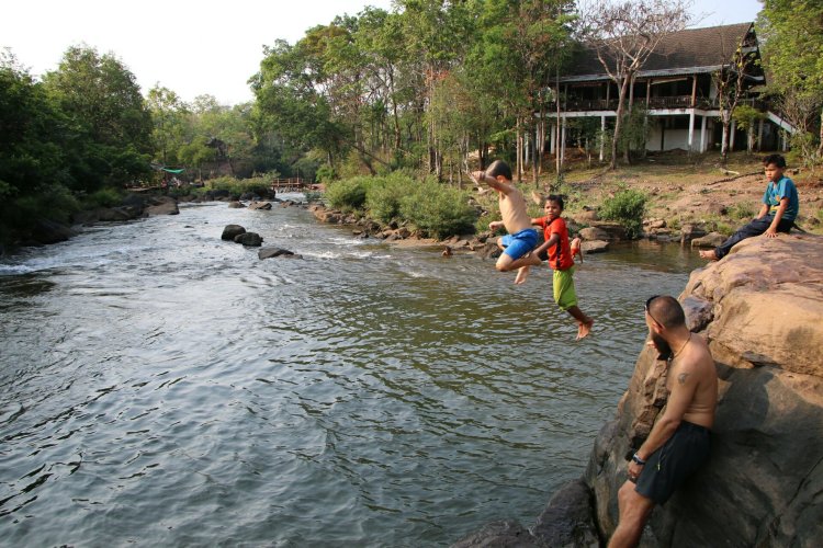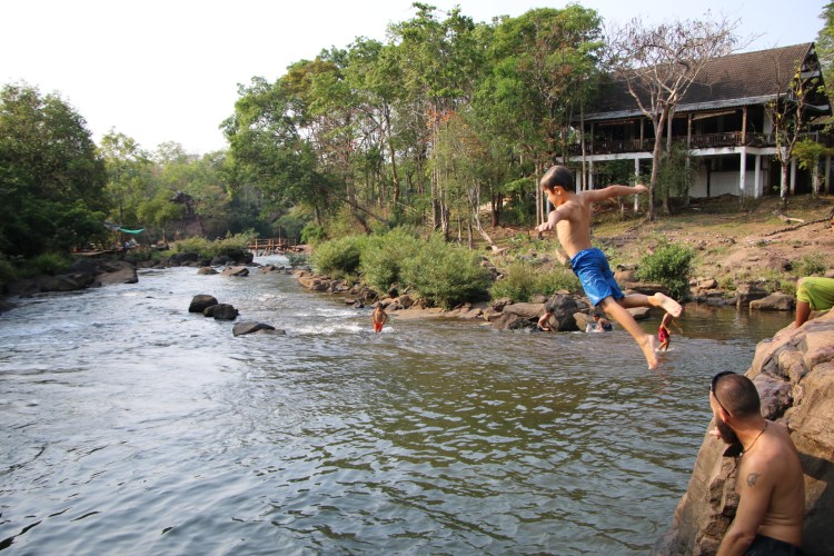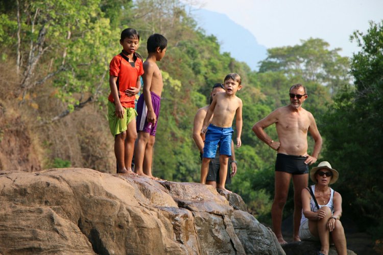 Cet arrêt à Tad lo, nous tenait particulièrement à coeur que nous avions rdv avec nos amis Alexandra, Maxime, Noam et Lucas (vous vous souvenez? Nous les avions rencontré en Inde à Jaisalmer, puis retrouvés à Khao Sok, en Thaïlande, et recroisé au Lac Inle au Myanmar)