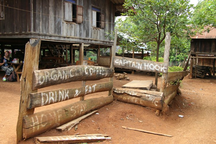 Alors là c’est tout une histoire! Capitaine Hook est un jeune homme très sympathique qui a développé au sein de son village ethnique, une petite activité touristique. La principale ressource de ce village, non reconnue par le gouvernement laotien étant sa production de café, capitaine Hook propose de visiter les plantations, tout en expliquant les uses et coutumes de son village. Durant la visite nous allons de surprise en surprise et découvrons un mode de vie moyenâgeux (âme sensible, ne pas poursuivre la lecture!)