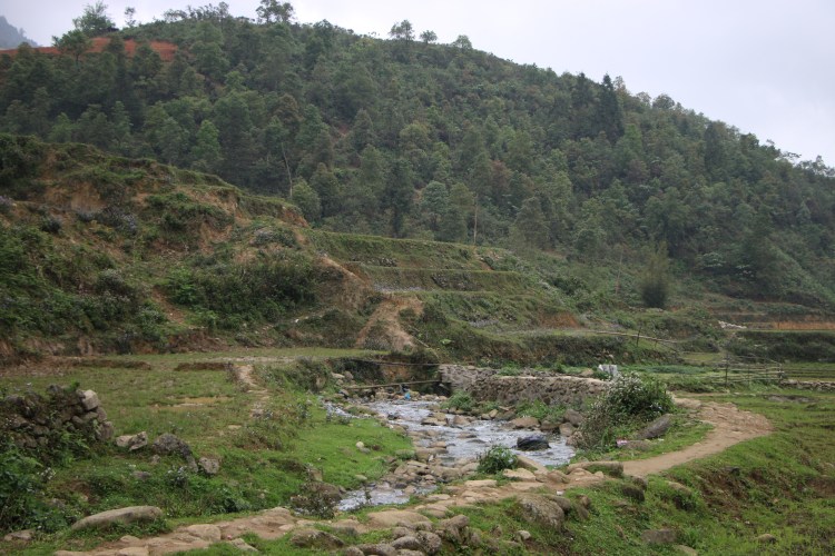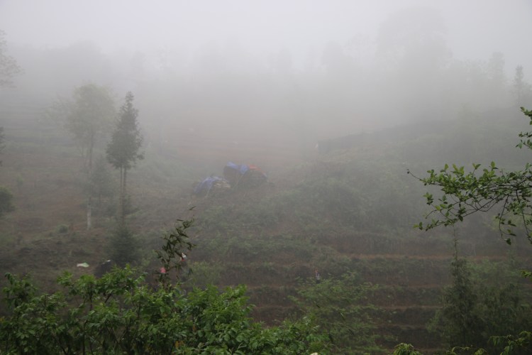 Malheureusement, le matin du départ du treck, il pleut des cordes! Bon il n’est que 7h, nous devons partir à 9h30, la pluie peut s’arrêter! Et c’est bien ce qu’il se passa, nous partons finalement à 10h30, convaincus que le beau temps va revenir! Dès le début de la marche, des montagnardes nous suivent, avec l’intention de nous vendre des petits souvenirs! Elles sont mignonnes, nous aident à marcher donc on les laisse nous suivre.