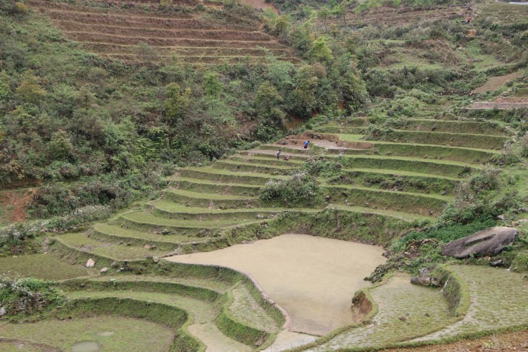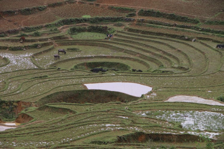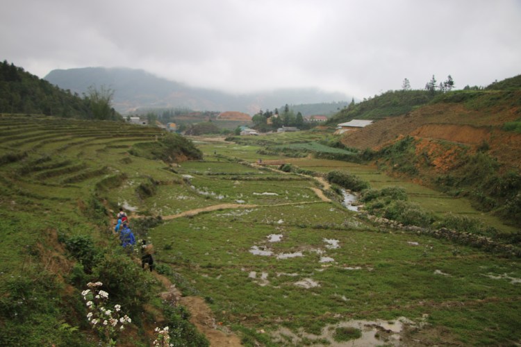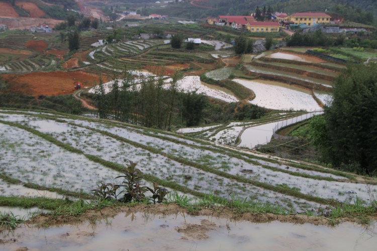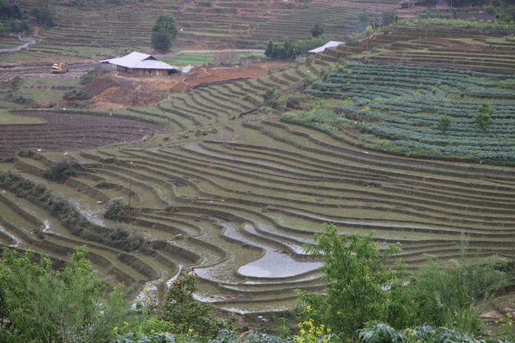 Le lendemain, il fait très froid et pas très beau, mais c’est jouable pour la randonnée! Nous partons donc pour la journée! Nous traversons quelques villages Dao noirs et rouges puis Hmong tout en découvrant de magnifiques rizières en terrasse qui font la réputation de la région. Les paysages sont très jolis mais de nombreuses constructions sont en cours: route, hôtel ,stade de foot, bref le paysage est pas mal dénaturé! De plus, il y a énormément de déchets! Tout ça est bien dommage car le paysage pourrait être exceptionnel! La randonnée aura finalement était sympa mais pas exceptionnelle pour autant! (Bon je sais, on commence à devenir difficile lol)