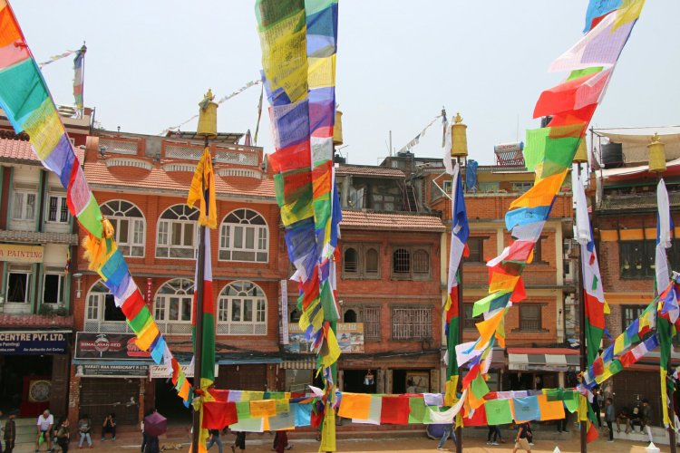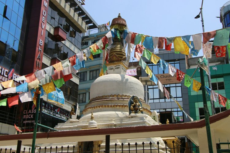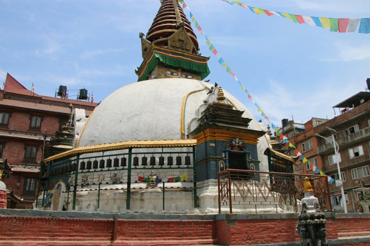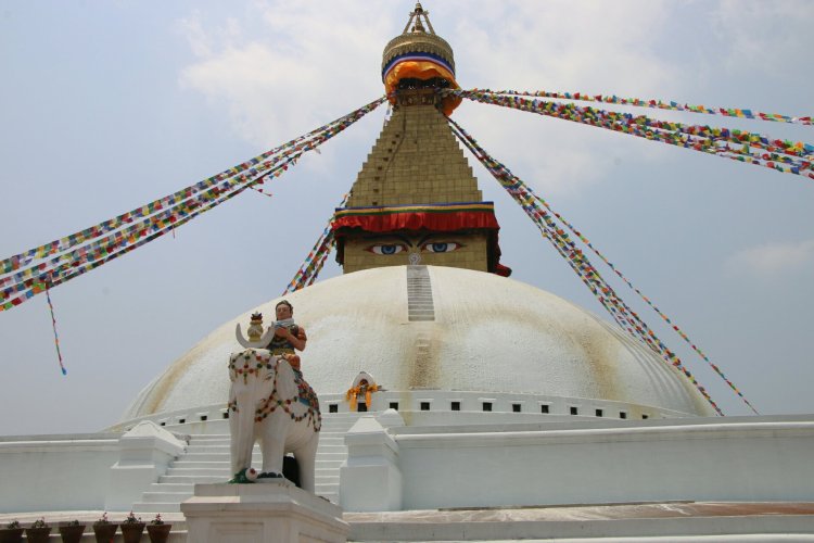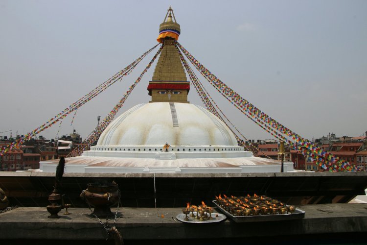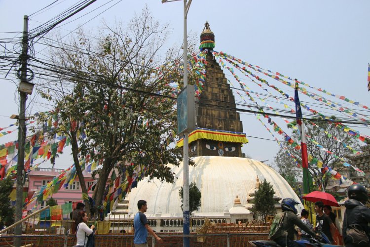 C’est vraiment la carte postale du Népal que l’on se fait. Un immense stupa blanc, avec les yeux de Bouddha et ses drapeaux de prières.