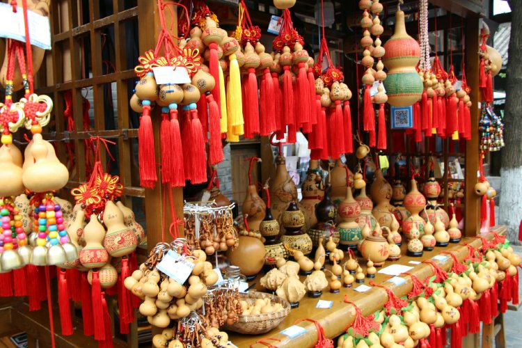 Après cette jolie découverte, nous avons repris le bus, puis le métro, direction la rue Jinli. (après avoir marché 3 heures dans le parc nous voilà reparti pour plus de 2 kilomètres du métro à la rue touristique!) Nous découvrons un quartier super sympa. Comme la veille, il y a de nombreux stands de street food et de jolies boutiques de souvenir dans un décors enchanteresque. Nous en faisons le tour puis nous remarchons 3 bons kilomètres jusqu’à l’hôtel.