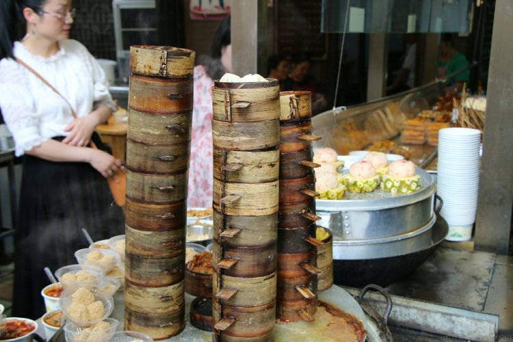 Non loin, toujours à pied, nous avons rejoins le Kuanxiangzi Alley. Un quartier historique et surtout touristique où on peut faire de jolies photos, manger de la street food traditionnelle ou acheter des souvenirs (ici c’est la panda mania)