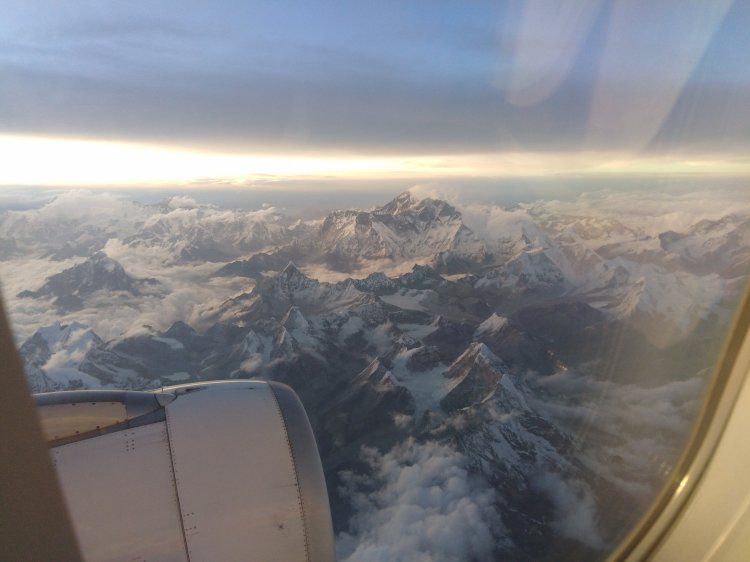 Nous sommes donc arrivés à Chengdu dans le Sichuan après un mois passé au Népal. Nous avons pris la compagnie chinoise Tibet Airlines depuis Kathmandu. Le vol a duré 2h40 et c’est passé dans de très bonne condition : avion neuf, sièges bien larges, film, repas et personnel accueillant. Pour dire vrai, on appréhendais vraiment ce vol car nous allions survoler l’Himalaya et pour notre plus grand bonheur le Népal nous a donné le plus beau des spectacles d’aurevoir en nous offrant une vue incroyable sur toutes la chaîne de l’Himalaya. Autant vous dire qu’on ne pouvait pas rêver mieux !