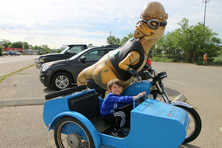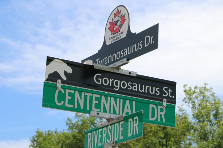 Drumheller, se situe dans une région de l’Alberta où un grand nombre de fossiles et ossements de dinosaures ont été retrouvés, notamment dans son canyon.